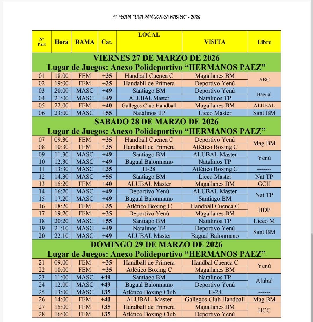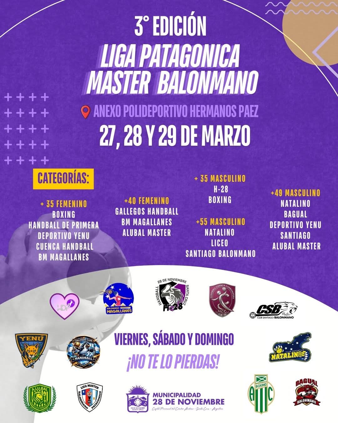 Este viernes se puso en marcha la tercera edición de la Liga Patagónica Máster de Handball, con sede en el Anexo Polideportivo Hermanos Páez de 28 de Noviembre. El certamen se desarrollará durante todo el fin de semana.