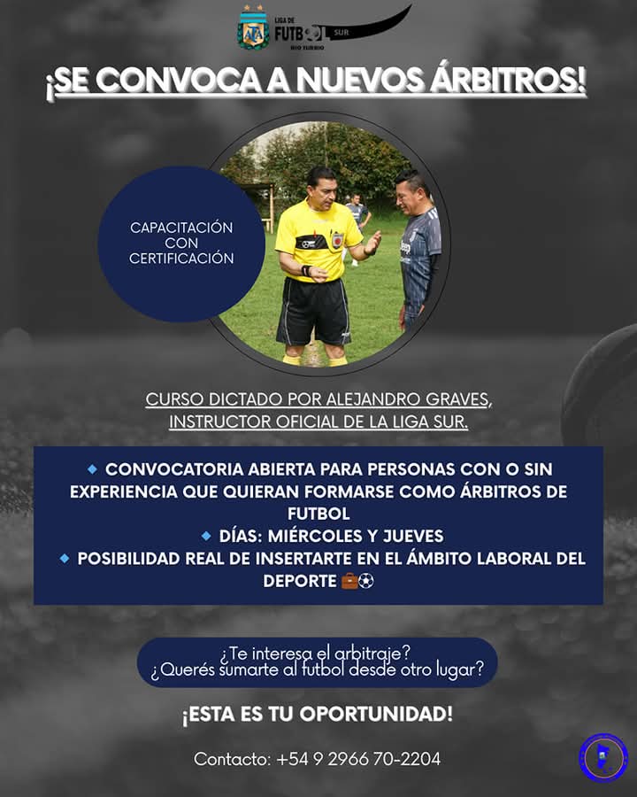 Desde la Liga nos comentaron que esta es una excelente oportunidad para aquellos que deseen desarrollarse en el arbitraje deportivo y formar parte de la Liga de Fútbol Sur de la Cuenca Carbonífera.