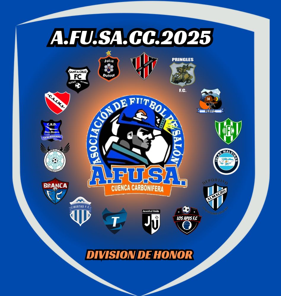 La Asociación de Fútbol de Salón de la Cuenca Carbonífera (Afusa) confirmó los 16 equipos que competirán en la División de Honor del torneo local 2025. Entre los equipos confirmados se encuentran el actual campeón, Deportivo Cachito, Julio Dufour FC, Pringles FC, Mina Tres, Santa Cruz FC, Islas Malvinas Desamparados, Fuji, Hielos FC, Branca FC , Los Apus, Almagro, Libertad FC, Transporte Thomás, Juventud Unida y Don Bosco.