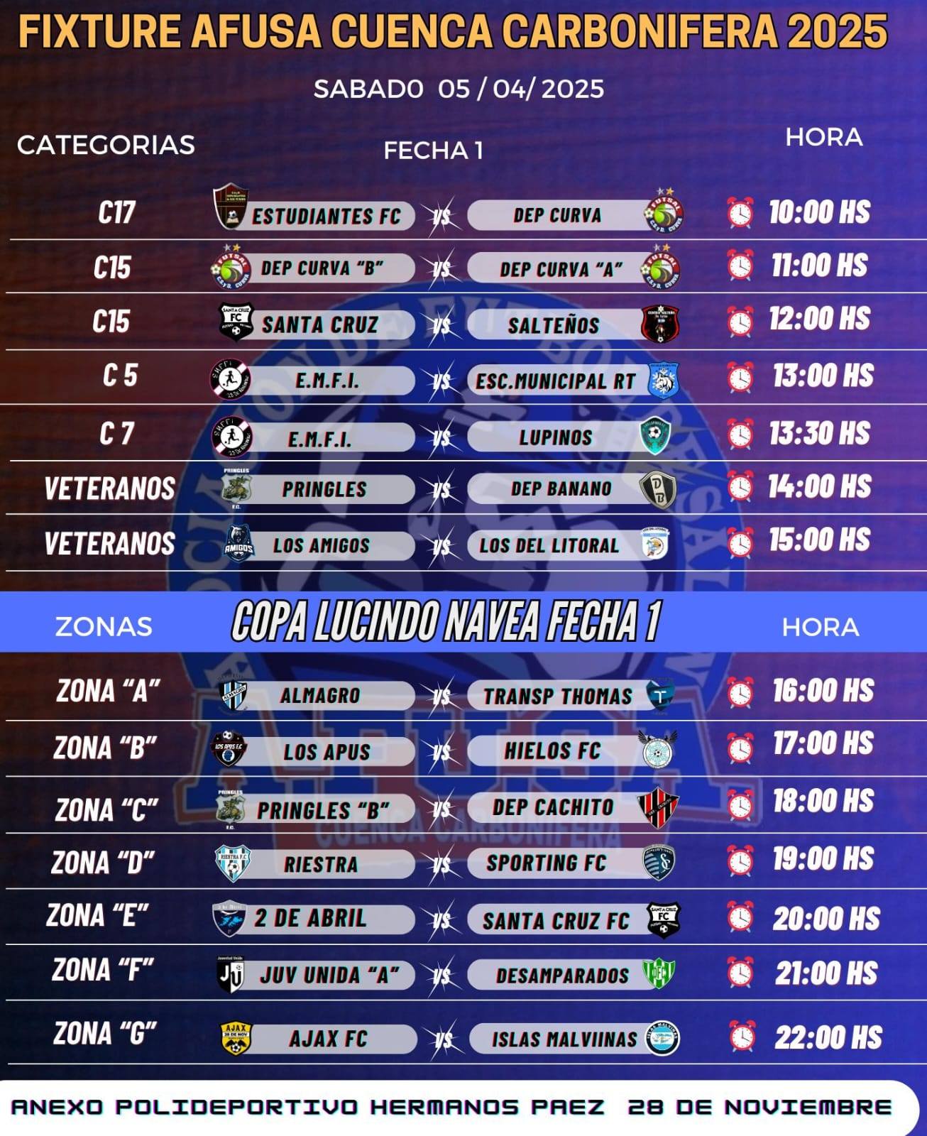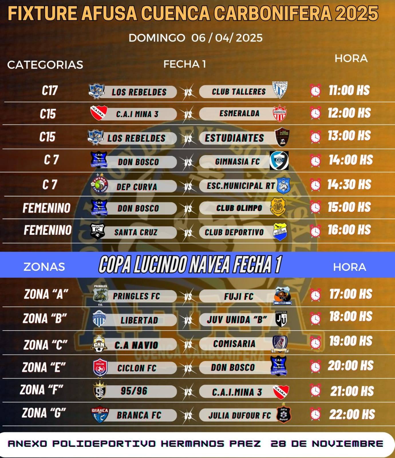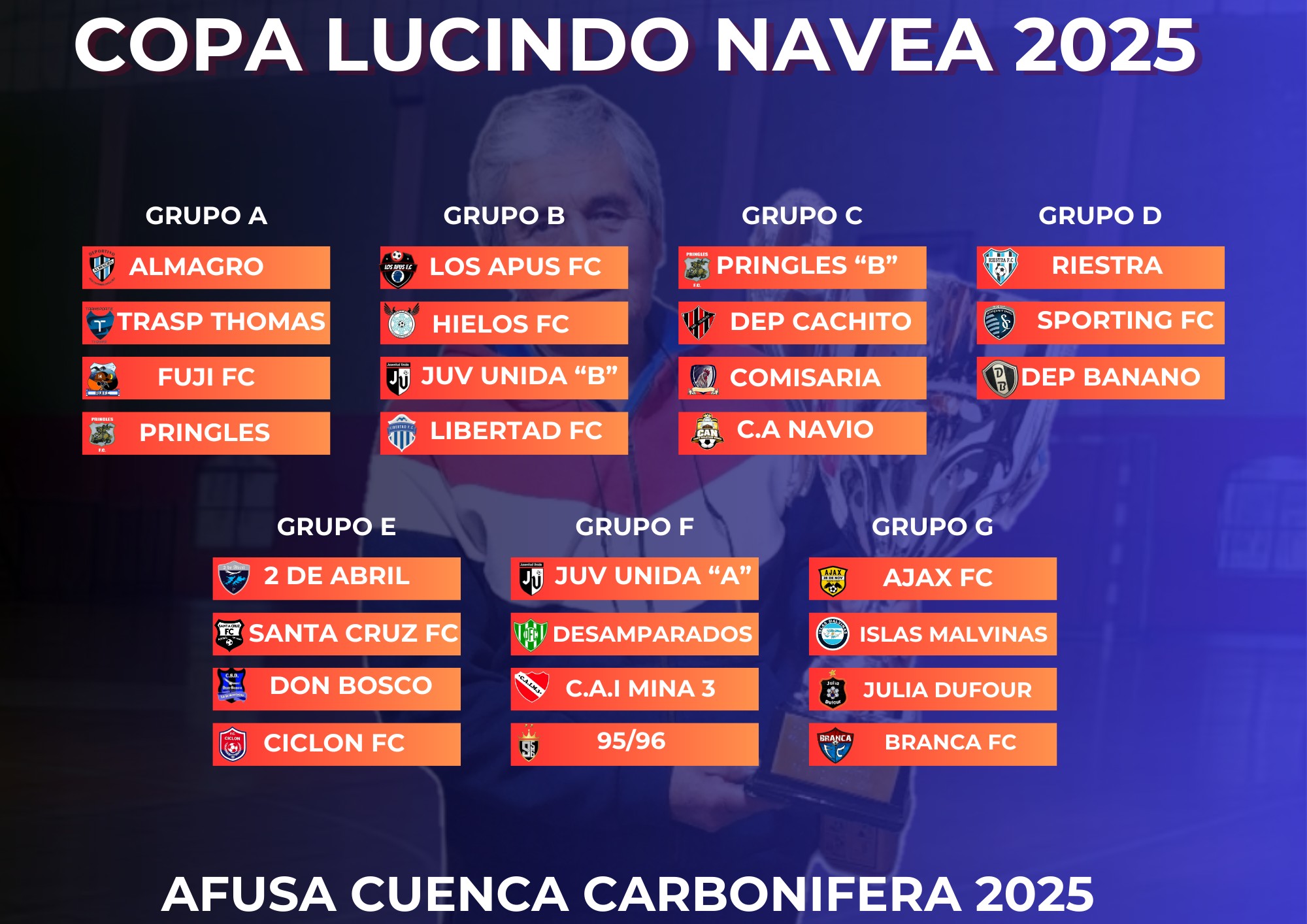 El fin de semana arranca la Copa Lucindo Navea, organizada por Afusa Cuenca Carbonífera, con 27 equipos divididos en 6 grupos de cuatro y uno de tres. La competencia se disputará en el anexo polideportivo Hermanos Páez el fin de semana.