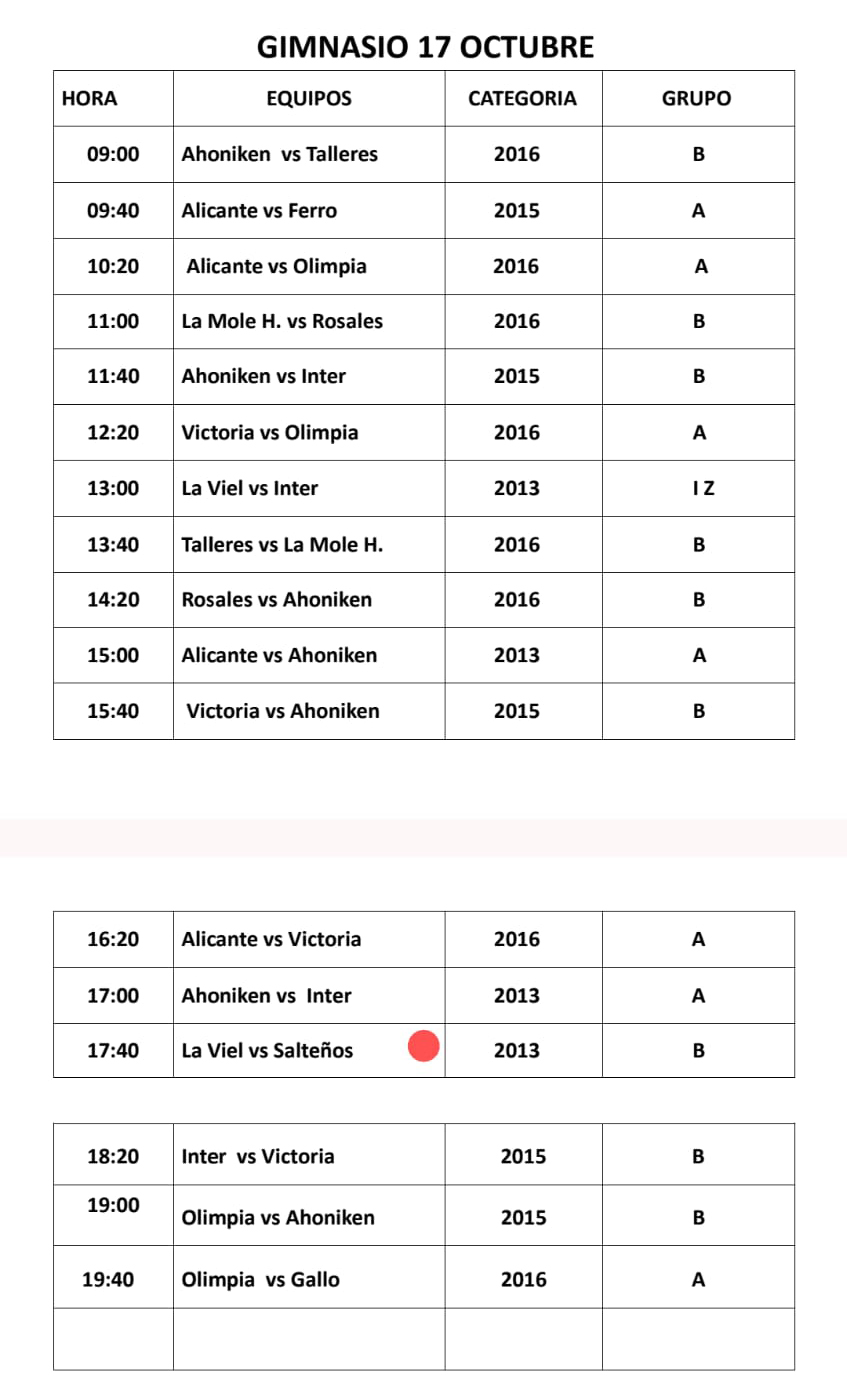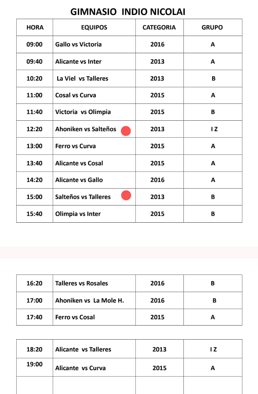 La actividad comenzará el viernes 6 de junio a las 20 horas con la acreditación, entrega de pulseras identificatorias y presentación de la indumentaria de juego. Los partidos de fútbol comenzarán el sábado 7 de junio a las 9 de la mañana, y el domingo se jugarán los partidos finales.