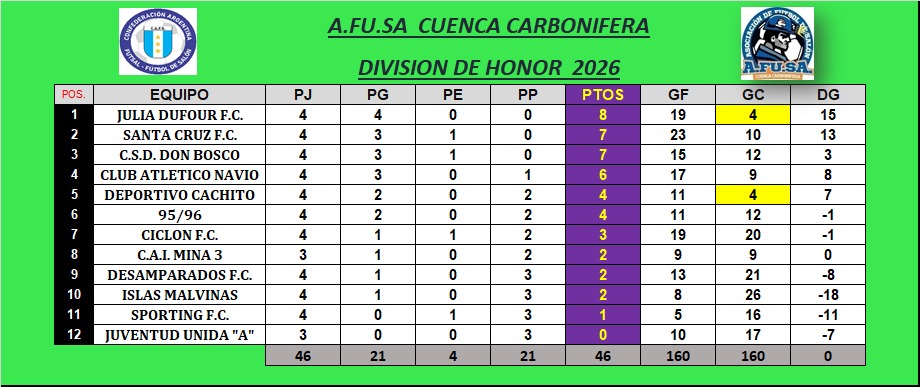 En cuanto a los resultados más destacados del fin de semana, uno de los golpes de la fecha fue la derrota de Deportivo Cachito, que cayó por 1 a 0 frente a Don Bosco. Por su parte, Julia Dufour continúa firme en lo más alto de la División de Honor, tras imponerse con autoridad por 4 a 1 ante 95-96.