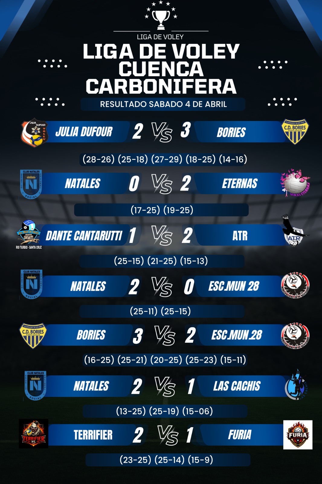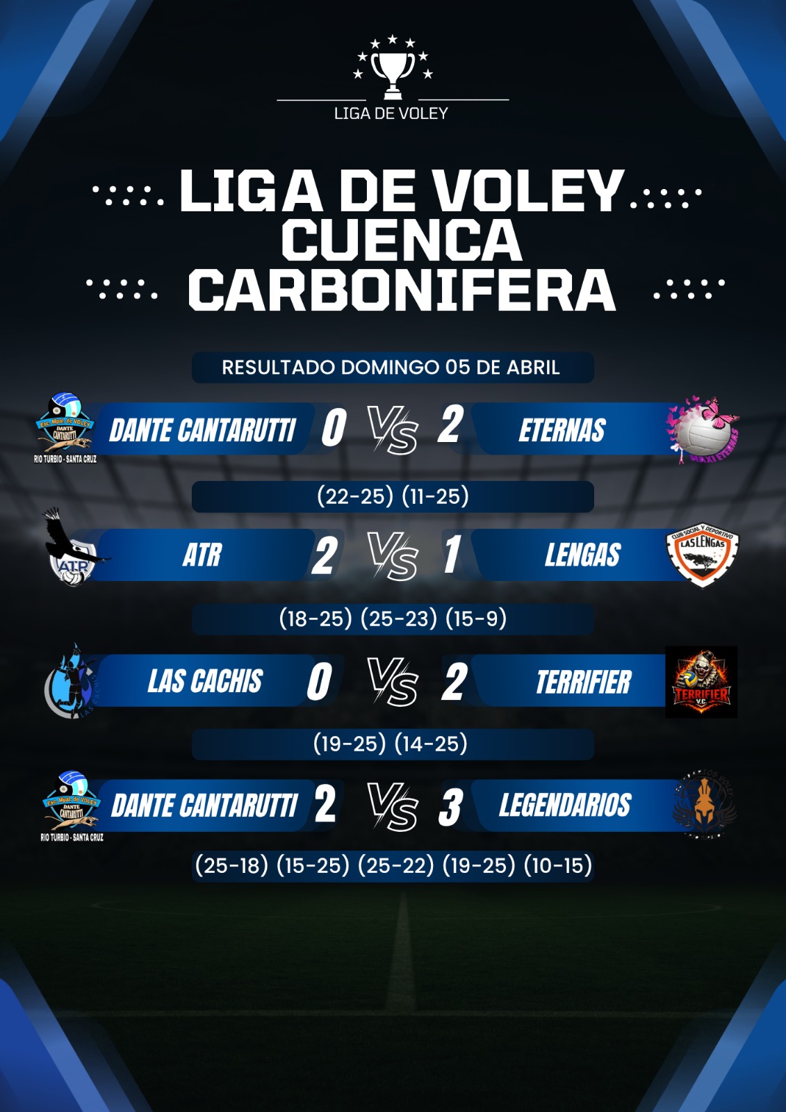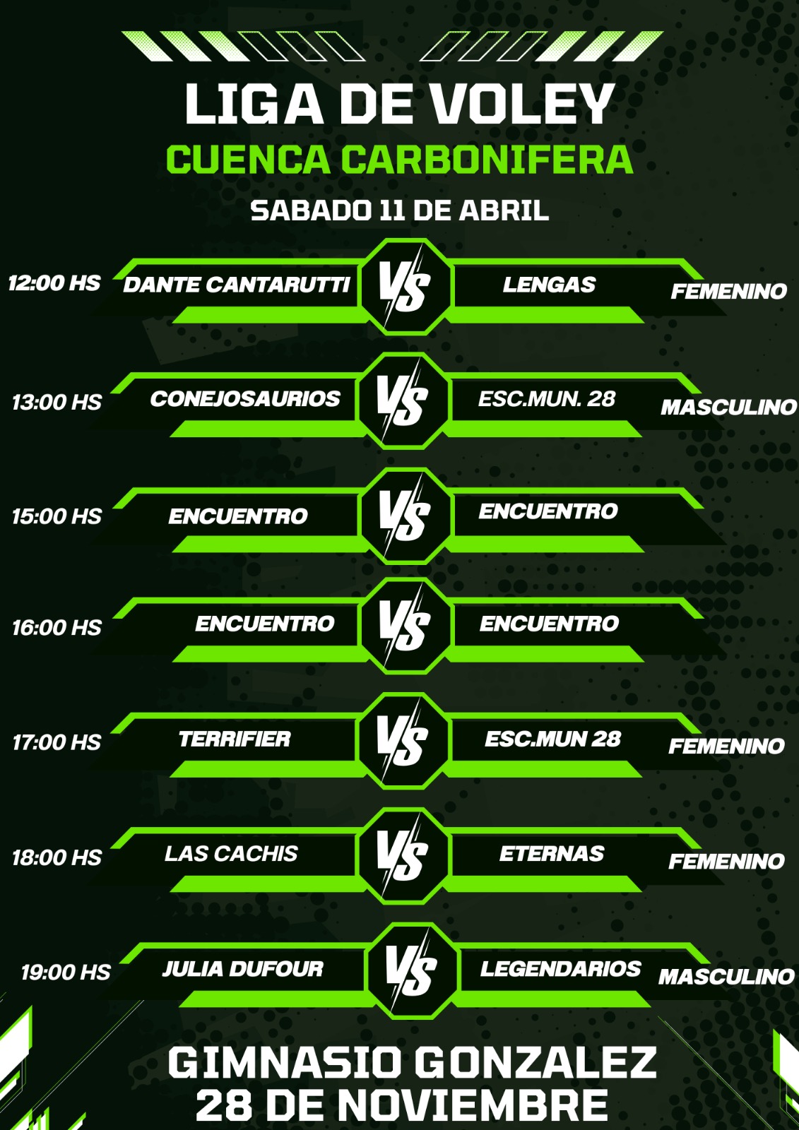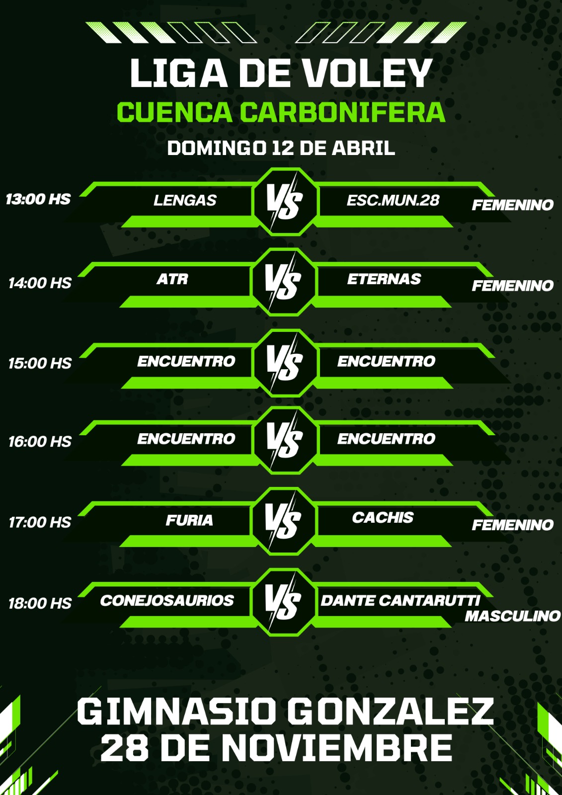 Durante el pasado fin de semana, la acción de la Liga de Vóley de la Cuenca Carbonífera tuvo continuidad con una intensa doble jornada disputada el sábado 4 y domingo 5 de abril en el gimnasio “Banano” Carrillo de la localidad de 28 de Noviembre.