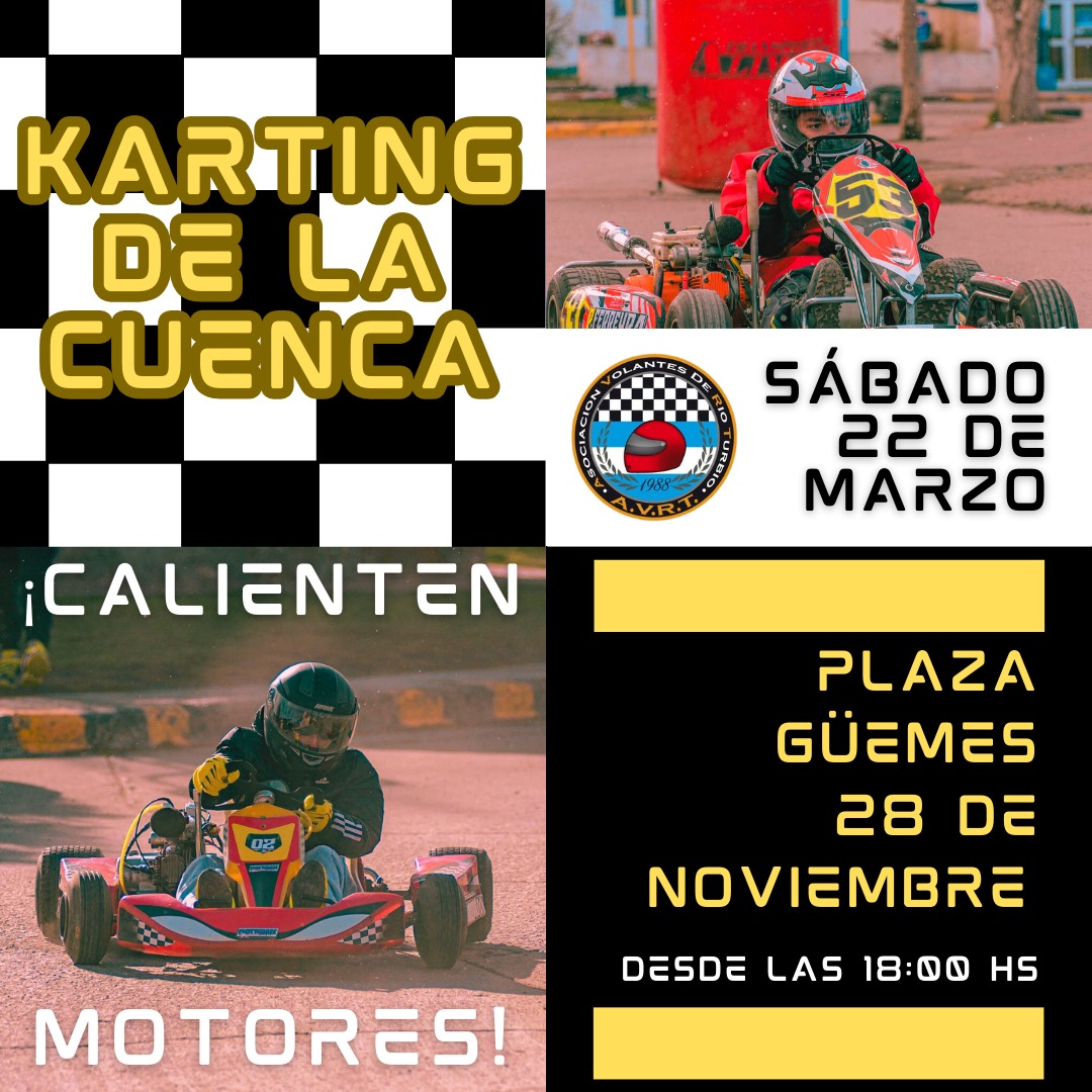 La categoría Karting, conformada exclusivamente por jóvenes pilotos de Rio Turbio y 28 de Noviembre, vuelve a la acción este sábado 22 de marzo en la Plaza Güemes de 28 de Noviembre, a partir de las 6 de la tarde.