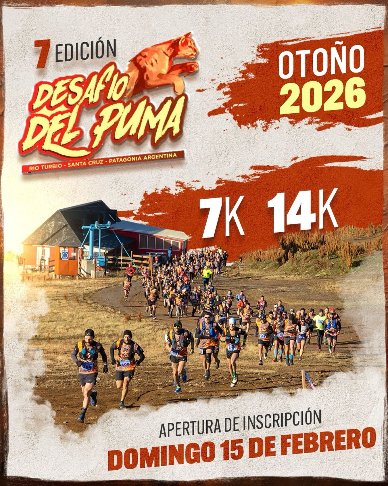 La séptima edición del Desafío del Puma ya empieza a tomar forma y promete volver a convocar a cientos de corredores en Río Turbio. La tradicional prueba de trail running, en su versión otoño, se disputará los días 25 y 26 de abril y contará con distancias de 7 y 14 kilómetros.