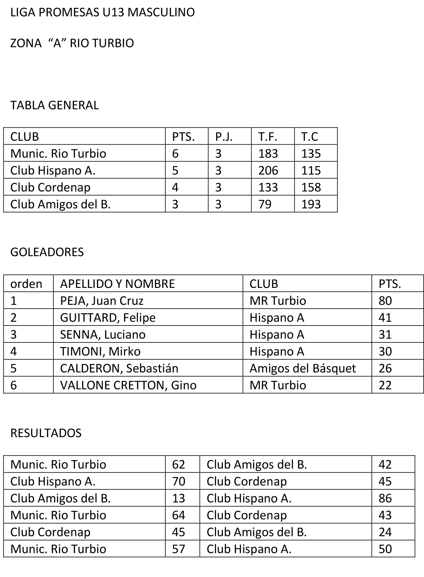 Río Turbio se quedó con la zona A de la Liga Promesas U13